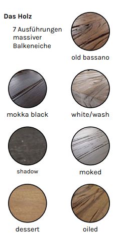 - massive Balkeneiche in vielen Farben