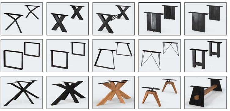 - viele Gestellvariantem aus Holz, Metall und Glas